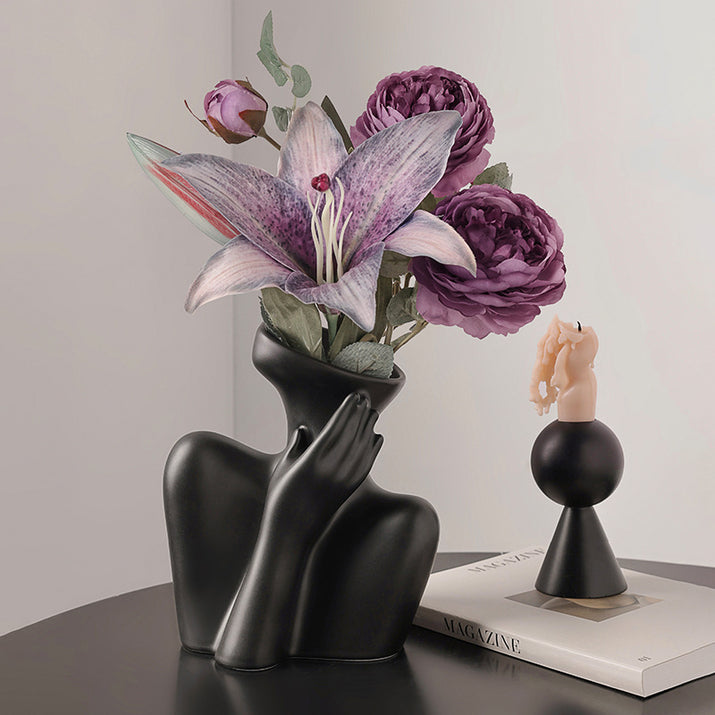 Answer 2: This vase embodies the Japanese Wabi-Sabi aesthetic, celebrating the beauty of imperfection with its minimalist, human-form design.